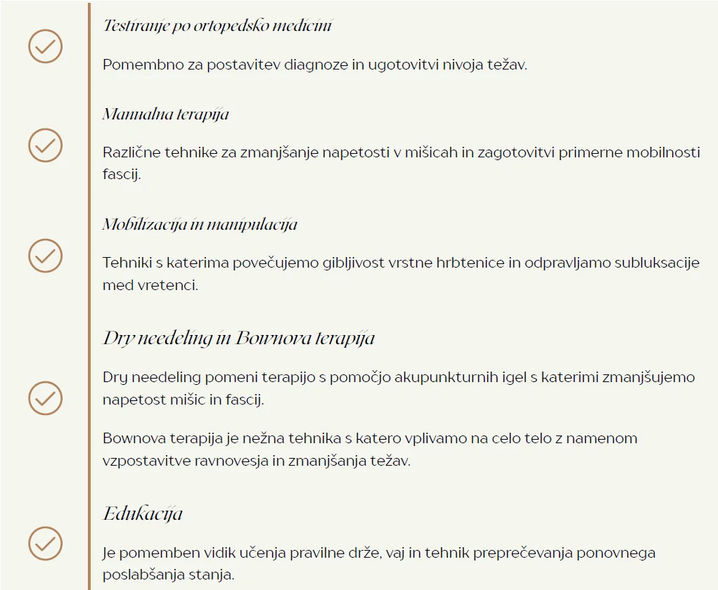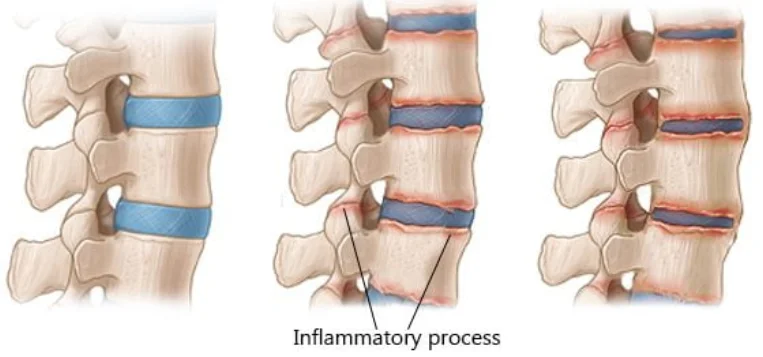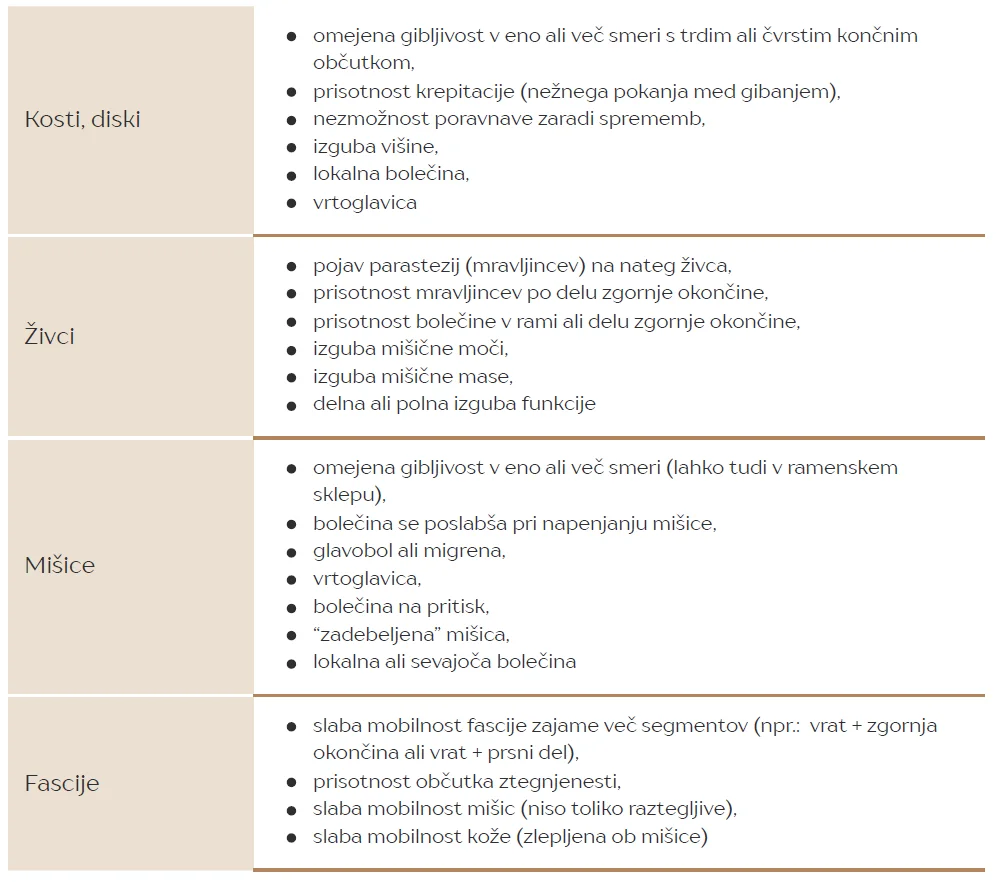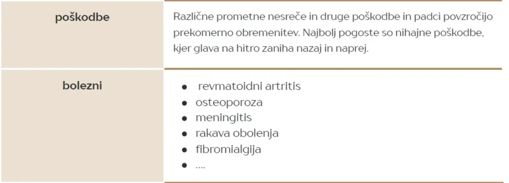 težave zaradi sprememb na nivoju kosti in medvretenčnih diskov.