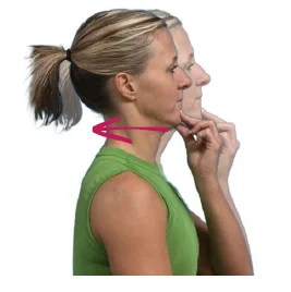 Sedite ali stojte vzravnano. Z dvema prstoma na roki primite brado. Počasi potisnite glavo naravnost nazaj in zadržite 3 sekundne. Vrnite se v začetni položaj in ponovite vajo 10x.